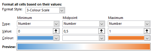 The matrix output colored as a heatmap using the formatting: