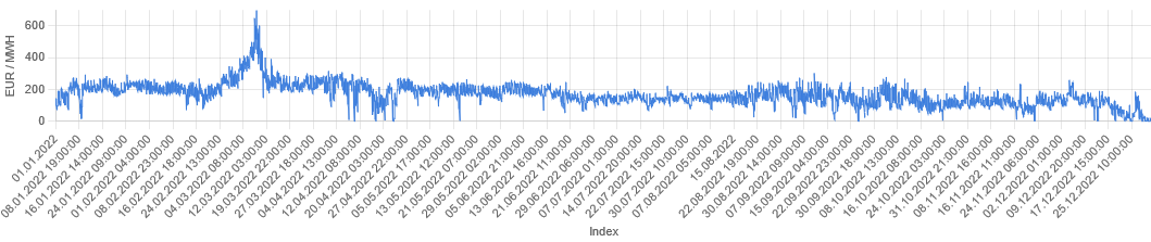 As an example we use Iberian Electricity data published by OMIE. Specifically we use electricity prices for Spain for the year 2022 on an hourly granularity.