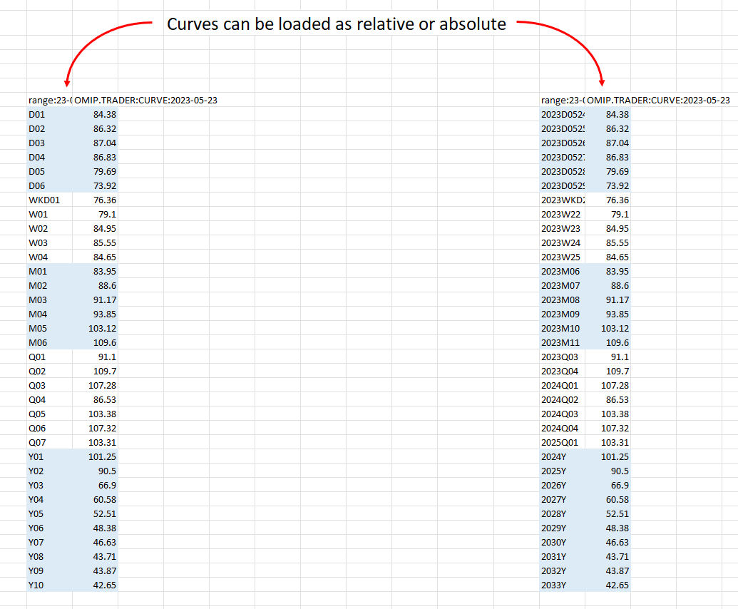In OpenDataDSL, traders can upload their curves using Excel using either relative or absolute tenors: