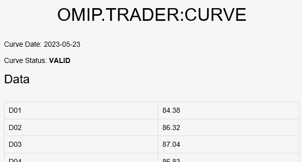 We want to ensure that the prices are within a reasonable percentage of the OMIP exchange previous days settlement prices, this will update the curve status information