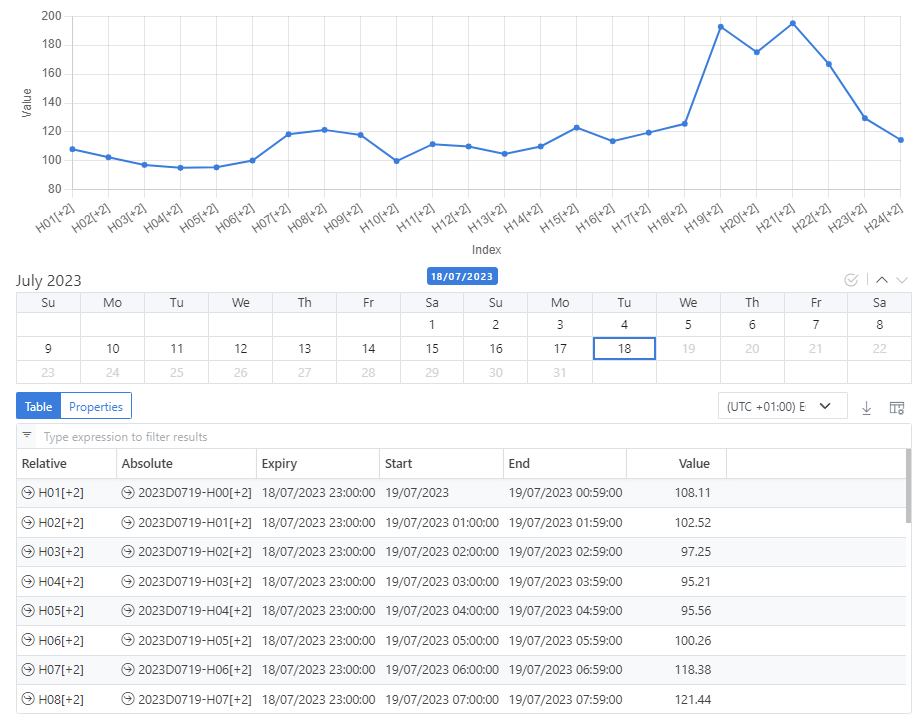 Screenshot from the OpenDataDSL portal of an hourly forward curve